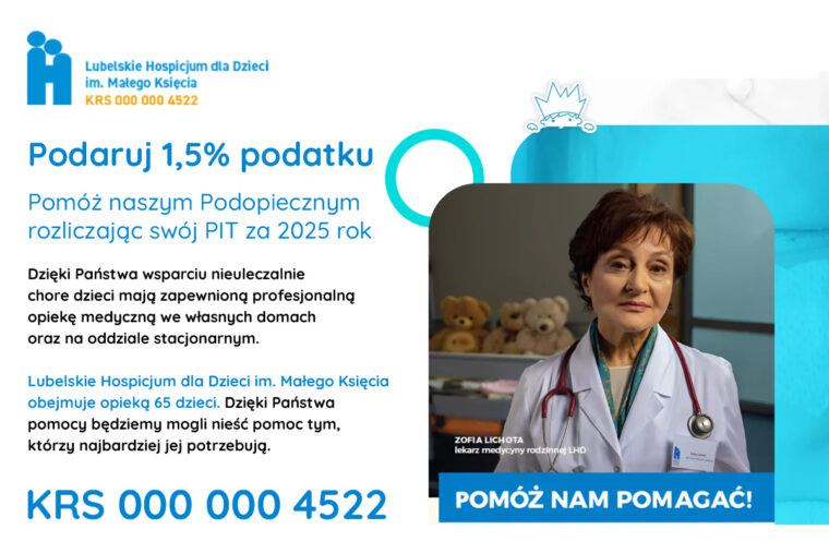 My zachęcamy Cię do wskazania w swoim zeznaniu podatkowym numeru KRS 0000004522 – to numer Lubelskiego Hospicjum dla Dzieci im. Małego Księcia – miejsca, które codziennie zmienia świat małych bohaterów na lepszy.